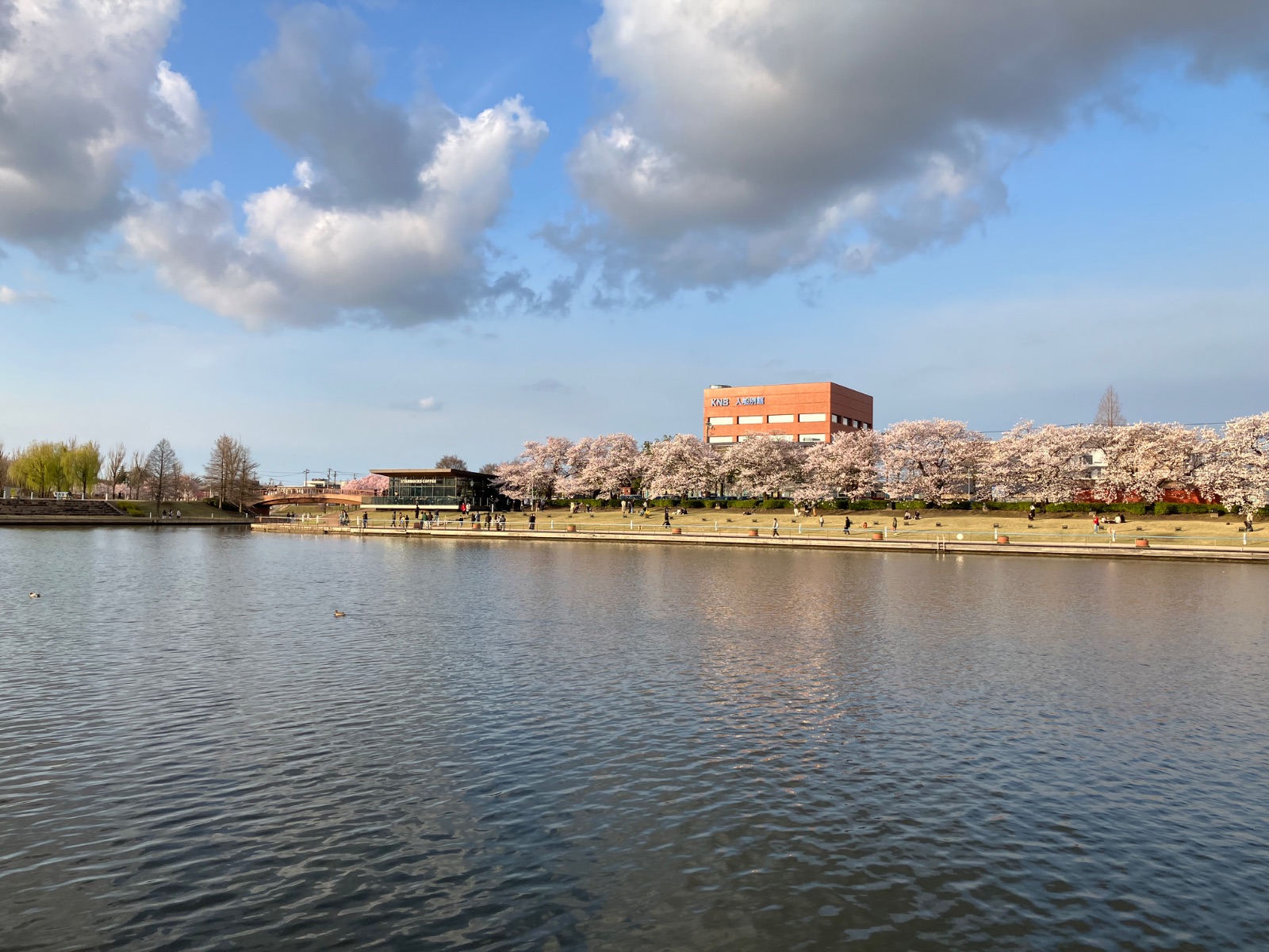 富岩運河環水公園の桜が満開!春の風景を iPhone SE で撮影