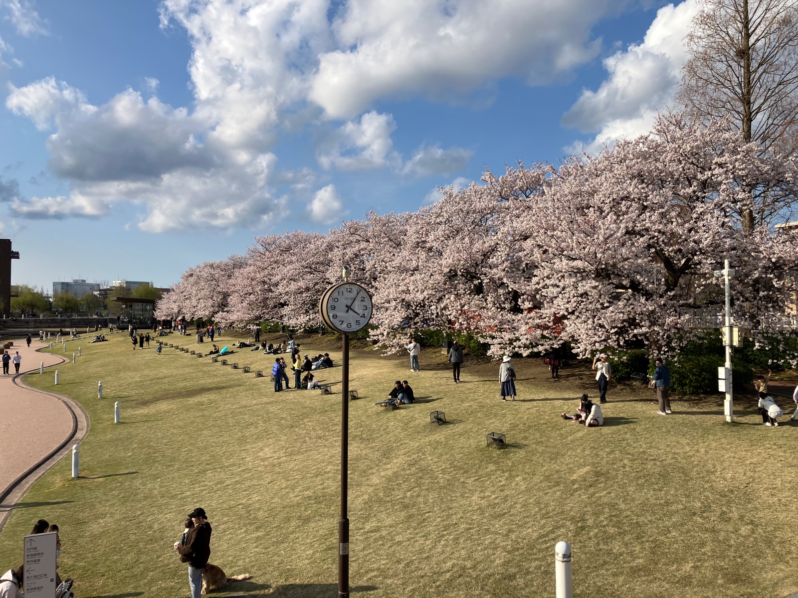 3枚目は公園の芝生広場の様子。こんなに広い場所に、これだけ桜が咲いているのは本当に贅沢。多くの人が腰を下ろして、春の陽気を楽しんでいました。