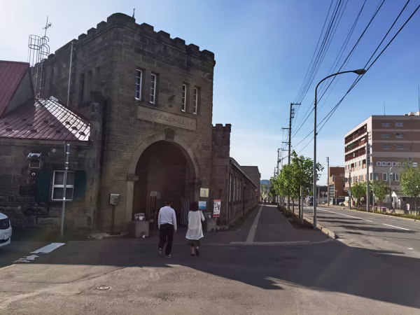 駅前すぐに見えてくるのが、黒ずんだレンガ塀に囲まれたニッカウヰスキー余市蒸溜所。まるで明治の時代に迷い込んだかのような趣があり、歴史の重みが漂っています。